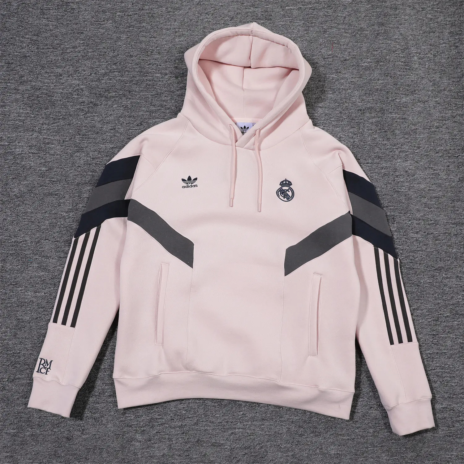 - Real Madrid 24-25 Fleece-Lined Training Hoodie Set - Light Pink Hoodie and Deep Grey Pants